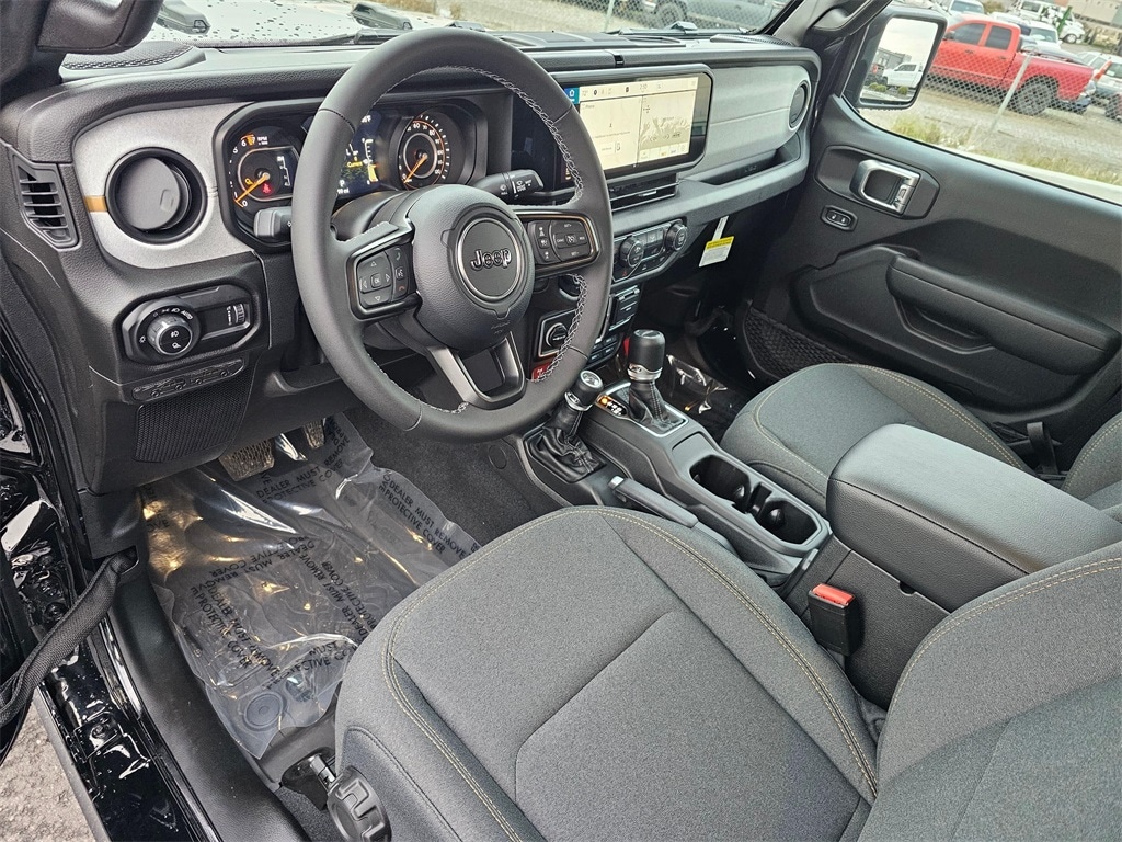 Uconnect 5 with 12.3-inch touchscreen, off-road info pages, SiriusXM 360L trial, Apple CarPlay/Android Auto, 8 speakers, media hub with USB/AUX ports, 12V auxiliary outlet, air conditioning with automatic temperature control, tilt/telescope steering column, steering-wheel-mounted audio controls, 6-way manual driver seat, 2-way manual lumbar passenger seat, behind-seat storage.