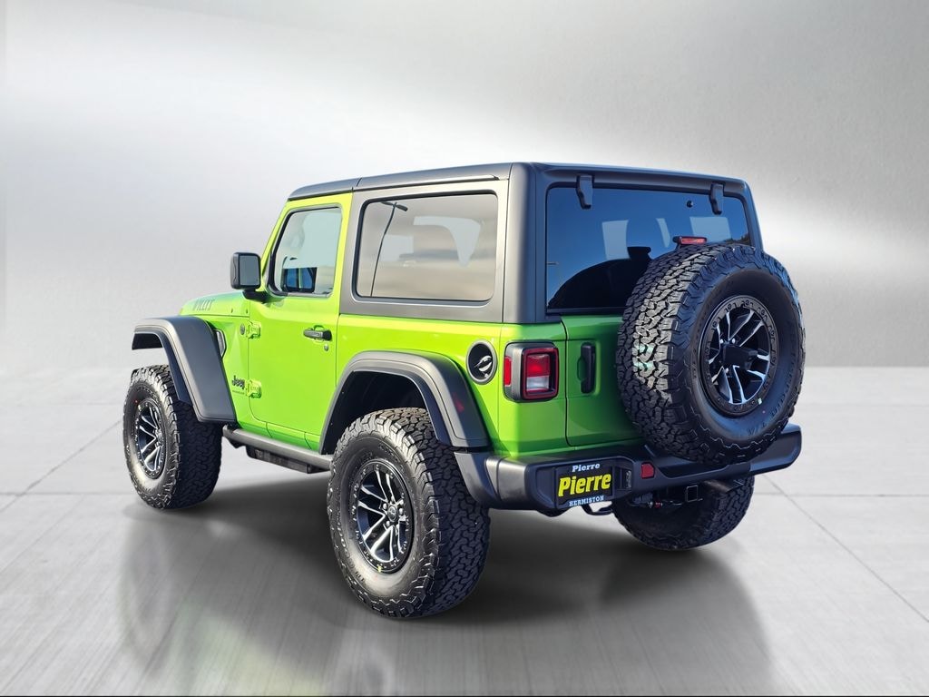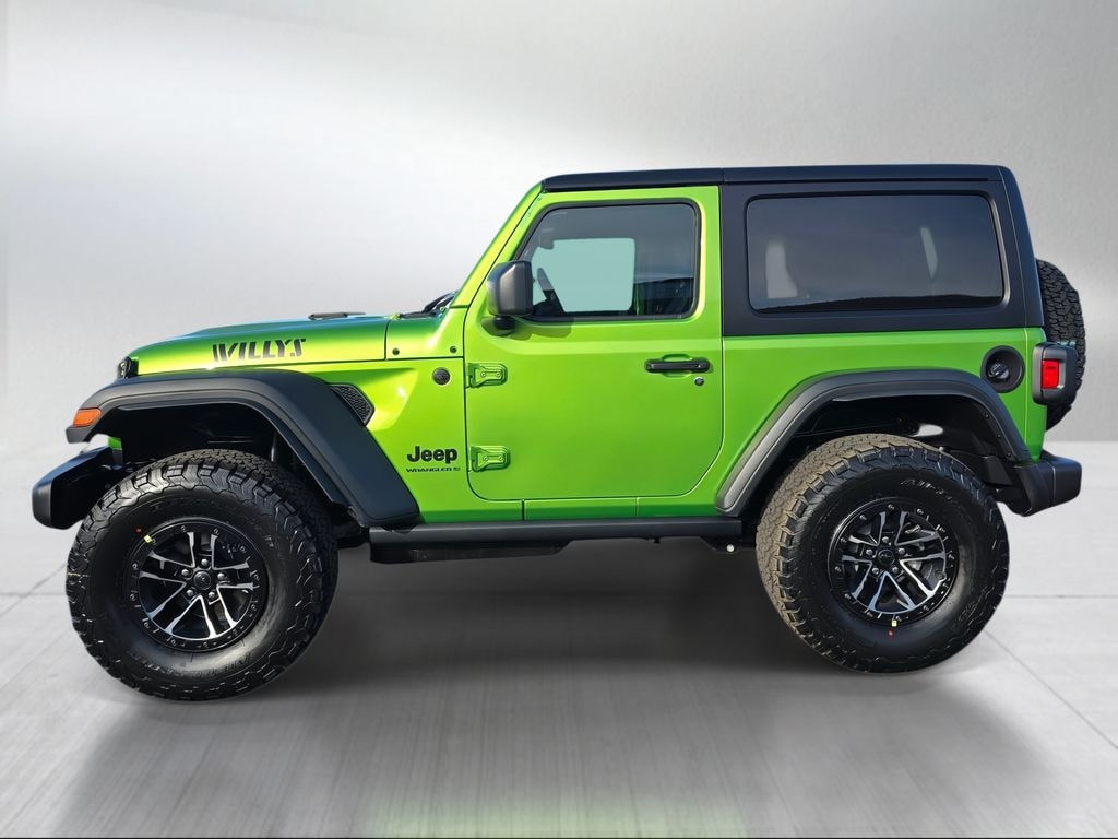 A classic 2-door Wrangler with Willys off-road enhancements, rugged styling, and modern tech. Finished in Mojito Clear-Coat with black interior.